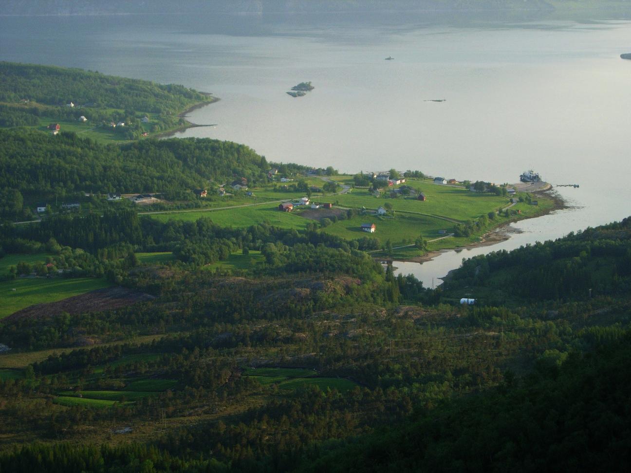 Nedover den skogbevokste lia mot kystriksveien kom jeg atter en gang bort fra stien, og det ble en nokså uryddig ferd nedover. Kom ned ved sørenden av Ågvatnet, like ved grensen mot Meløy kommune. Nå var det bare å innstille seg på å slite asfalten ei stund.