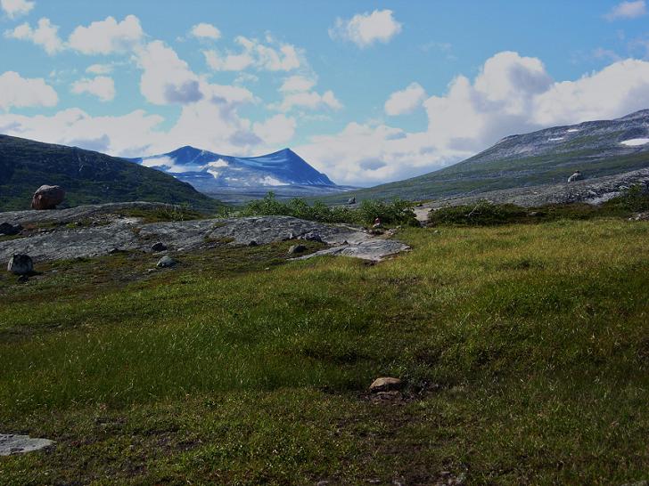 Ingenting tydet på at sommeren var på hell, selv ikke her ved polarsirkelen, og sola steikte godt. Heldigvis var det en svalende bris som gjorde vandringen til en behagelig opplevelse. Jeg hadde knapt gått gjennom undergangen, før jeg støtte på de første turfolkene, da en mann og en gutt kom joggende nedover stien. Litt etter møtte jeg et godt voksent par med hund.