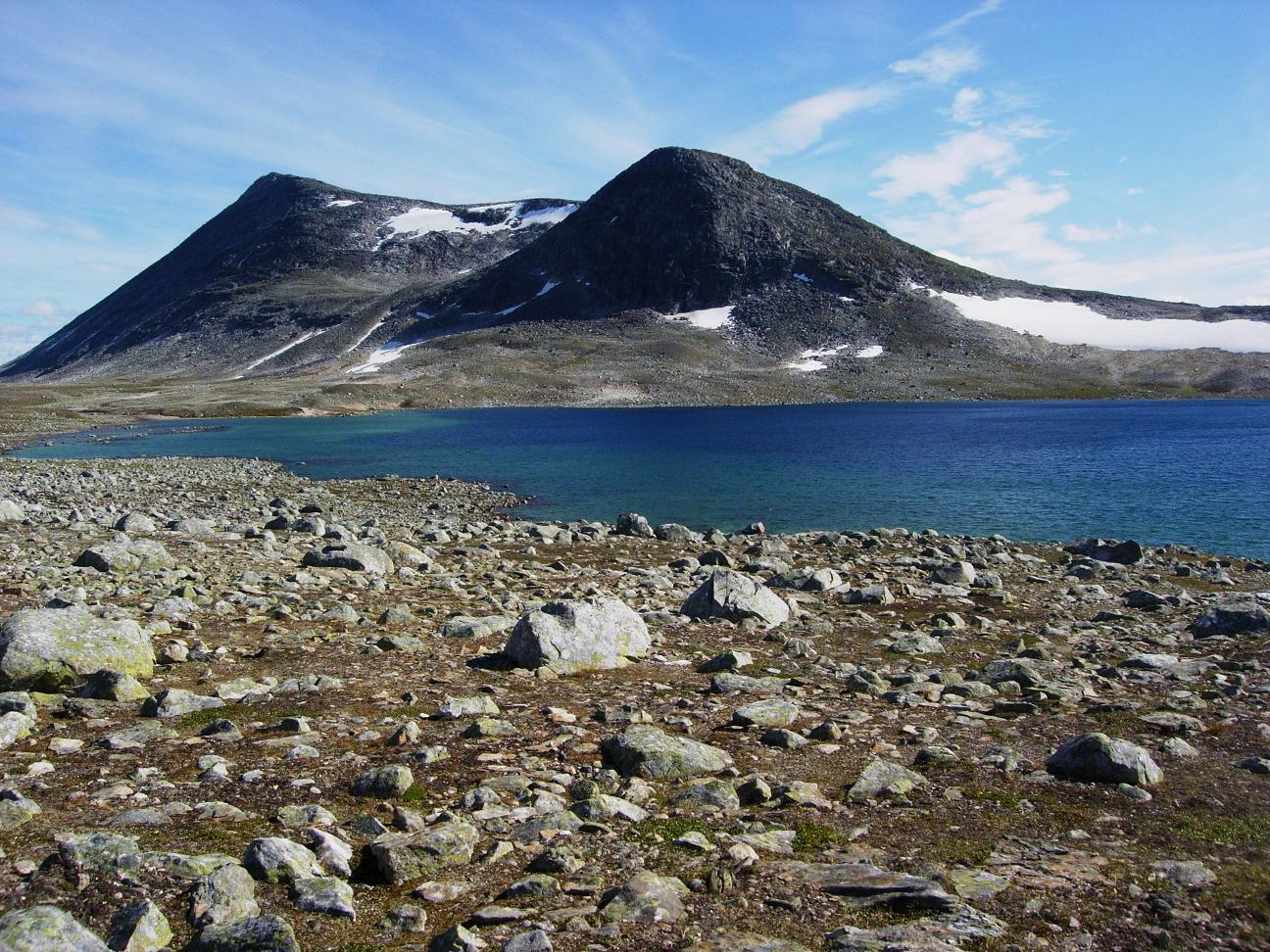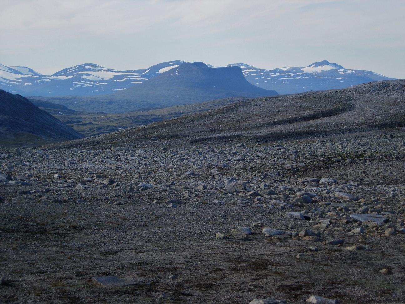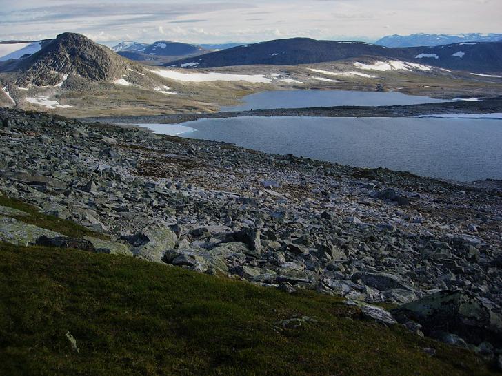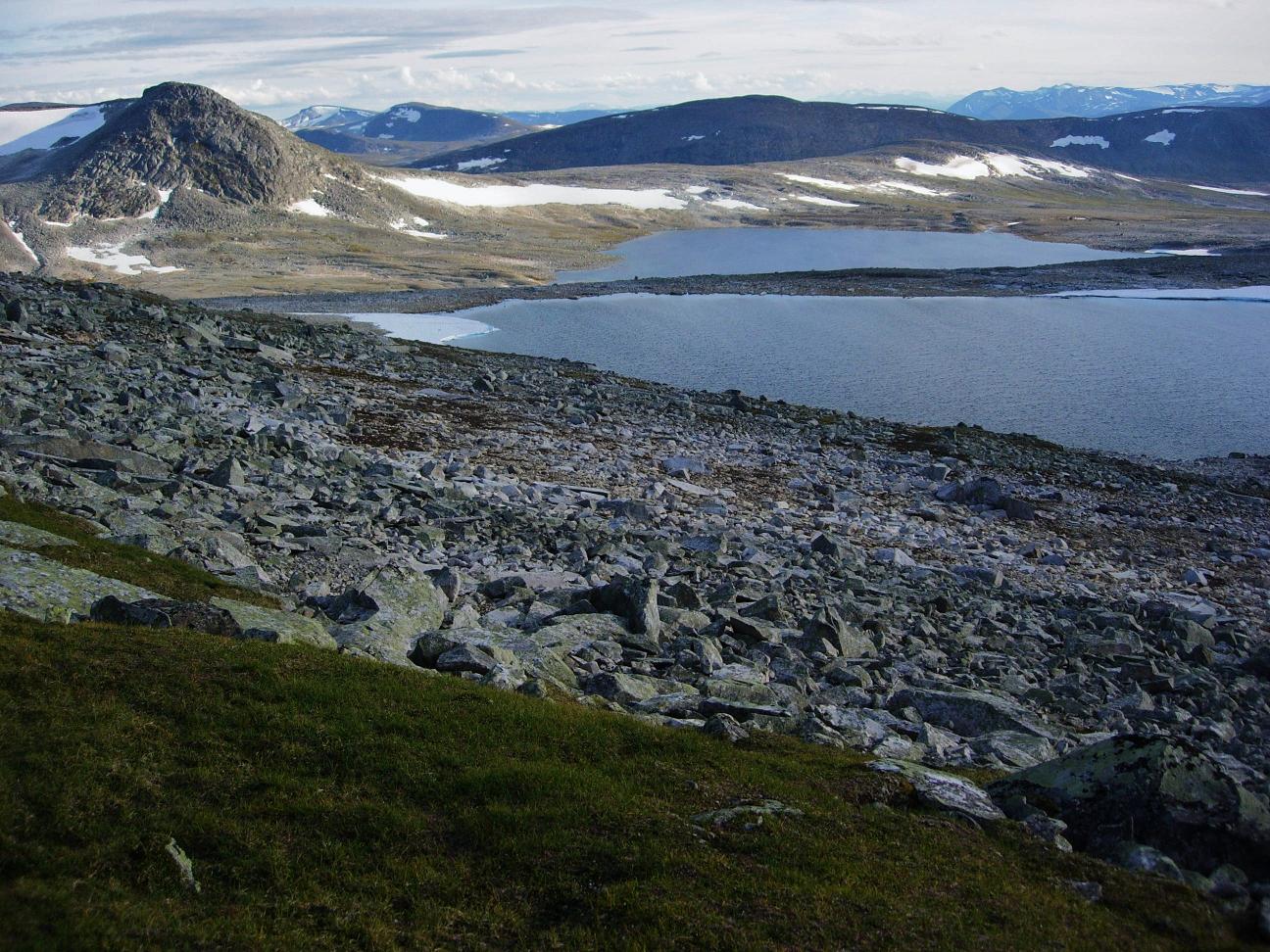 Jeg begynte å bli sliten etter en lang dag i til dels krevende fjellterreng, men fremdeles gjenstod det drøyt fire km før jeg var nede ved Kjemåbekken, så det var bare å stålsette seg for mer stein.