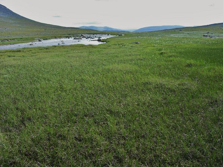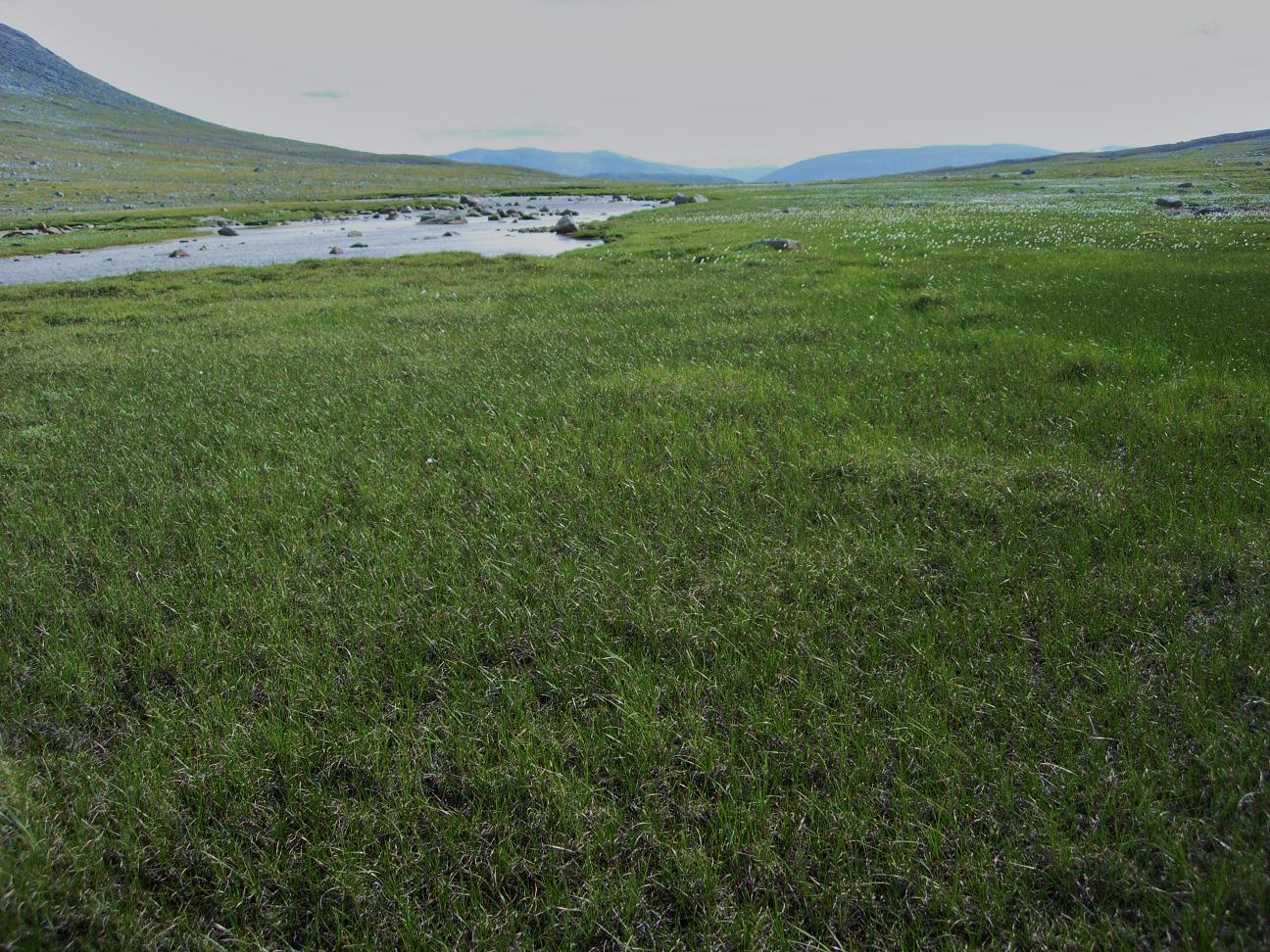 Jeg er i gang med siste etappe. Gårsdagens steinørken er erstattet med grønne enger.