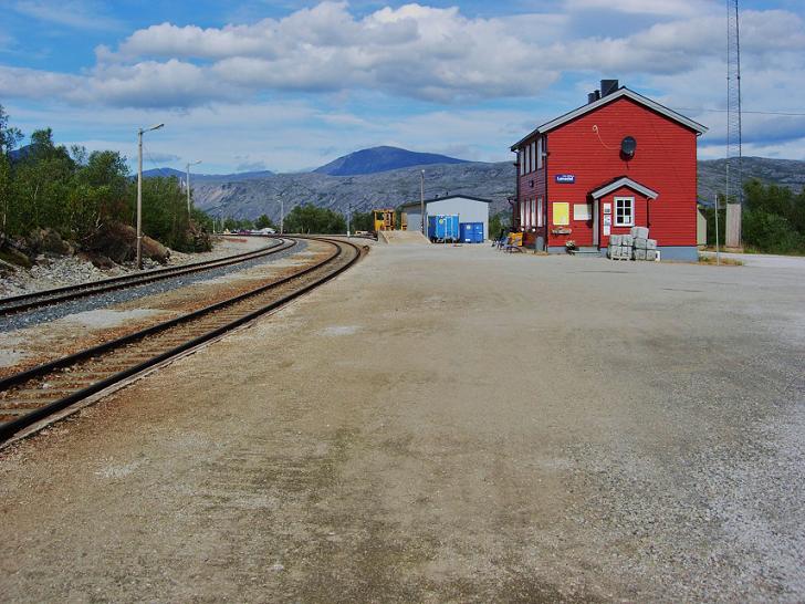 Lønsdal stasjon dukker opp, og fjellturen går ubønnhørlig mot slutten.