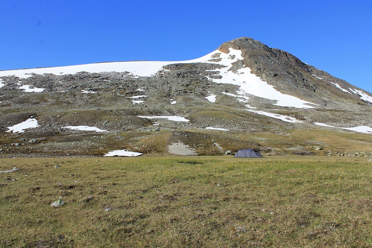 Noen små rusleturer ble det ut i solsteiken for å gjøre nødvendige gjøremål, men utenom dette ble store deler av dagen tilbrakt i teltet. Det var varmt, men samtidig godt å slippe unna de sviende solstrålene. Utpå ettermiddagen, da sola ikke var så intens lenger, gikk jeg over Semska og oppunder en markant morenehaug på den andre sida av elva. Her var det deilig skyggefullt, selv om mygga gjorde sitt ytterste for å bryte idyllen.